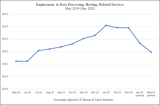 The second chart (above) shows employment in Data Processing, which includes hosting and providing data processing services.